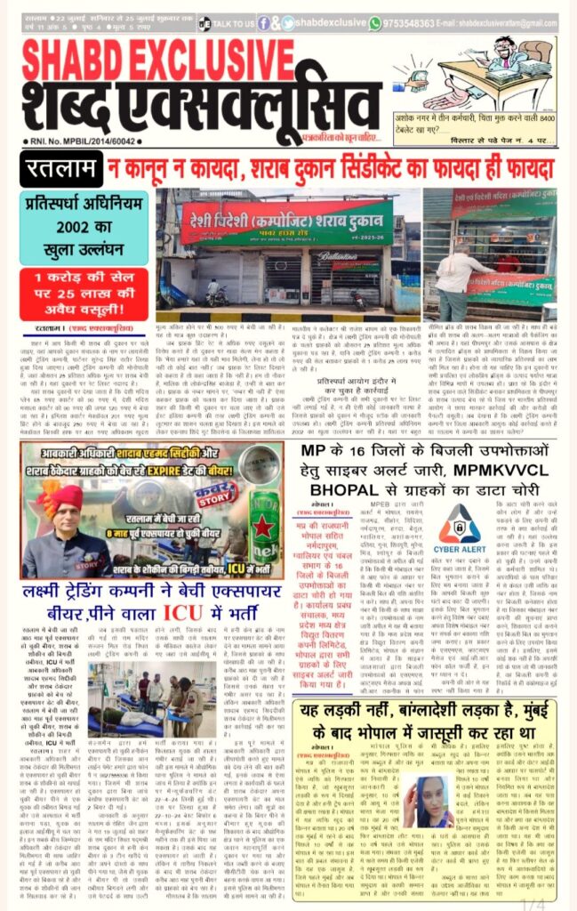 रतलाम। शहर में आप किसी भी शराब की दुकान पर चले जाइए, वहां आपको दुकान संचालक के नाम पर लायसेंसी लक्ष्मी ट्रेडिंग कम्पनी, पार्टनर सुरेन्द्र सिंह राठौर लिखा हुआ दिख जाएगा। लक्ष्मी ट्रेडिंग कम्पनी की मोनोपाली है, जहां औसतन 25 प्रतिशत अधिक मूल्य पर शराब बेची जा रही है। यहां दुकानों पर रेट लिस्ट नदारद है।